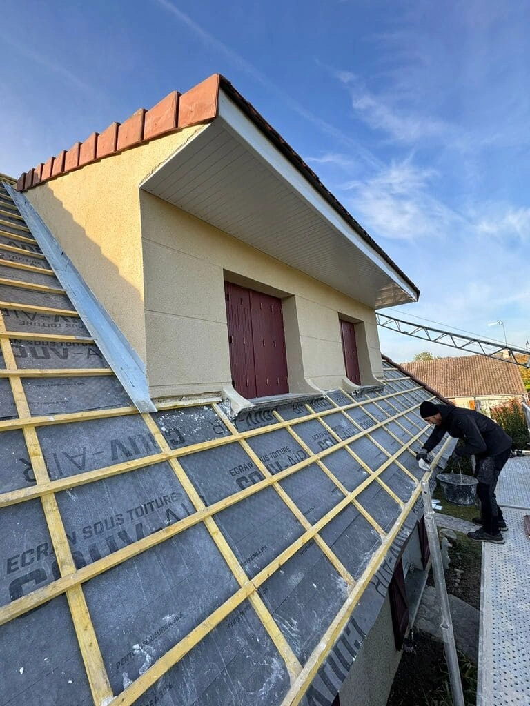 Installation d’une nouvelle couverture (tuiles, ardoises, écran sous-toiture) avec une attention particulière portée à l’isolation et à l’étanchéité. Les matériaux utilisés sont choisis pour leur résistance et leur durabilité.
